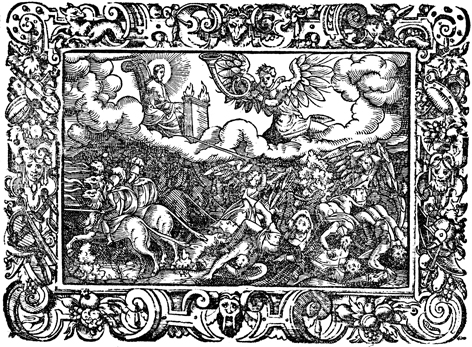 Description: An angel sounds the sixth trumpet and causes the attack of an army of angels and lion-like horses.