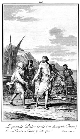 Description: Peter asks Jesus about his fate, as well as the fate of the disciple whom Jesus loved. The engraver’s name is located at the lower right corner.