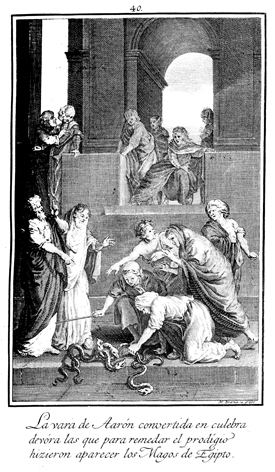 Description: Moses and Aaron appear before Pharaoh and turn Aaron’s staff into a serpent. This serpent then swallows the serpents created from the staffs of Pharaoh’s magicians.