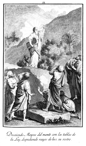 Description: Moses returns with a radiant face, after receiving the second set of tablets with the Ten Commandments.