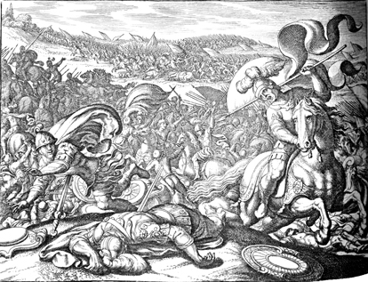 Description: Saul falls on his own sword to avoid being taken prisoner by the Philistines.