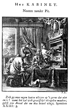Description: While people are fascinated with the unusual and rare objects, such are not worthy of their devotion (Proverbs 23:5). Better it is to devote oneself to virtue and store it up in the heart. The Dutch artist and poet Jan Luiken (1649–1712), whose initials are at the lower right, was responsible for drawing and etching this emblem and wrote the accompanying poem.