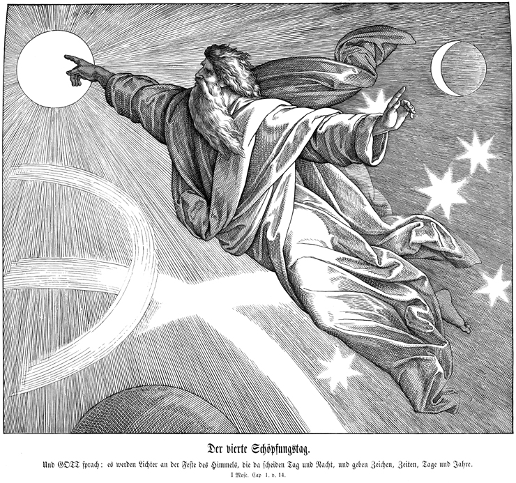 Description: Julius Schnorr von Carolsfeld's (1794-1872) depiction of God creatiing the sun, moon, and stars.