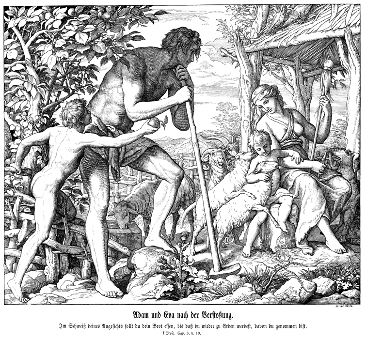 Description: Julius Schnorr von Carolsfeld's (1794-1872) depiction of Adam and Eve with their children Cain and Abel.