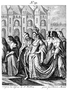 Description: While escorting an empress with her retinue on a walk outside the palace, Death points out a nearby grave to display the limits of the empress' dominion. Engraved by Chrétien de Mechel (1737–1817) after the original design by Hans Holbein, the Younger (1498–1543).