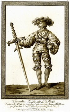 Description: A 16th-century Swiss knight in full regalia, after the original design by Hans Holbein, the Younger (1498–1543).