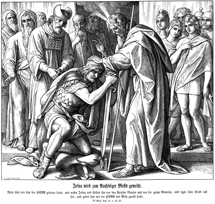 Description: Julius Schnorr von Carolsfeld's (1794-1872) depiction of Moses commissioning Joshua to be his successor in the presence of the Hebrew people.