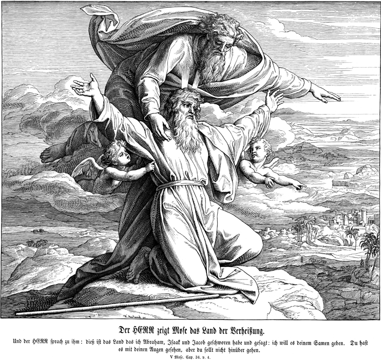 Description: Julius Schnorr von Carolsfeld's (1794-1872) depiction of God revealing the Promised Land to Moses from Mt. Nebo.