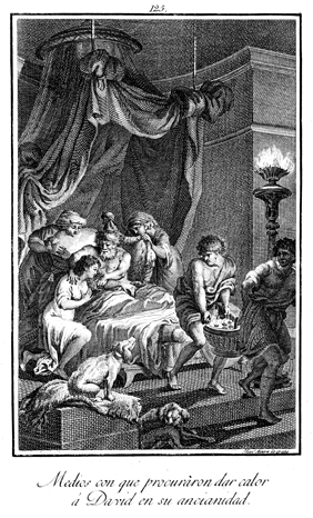 Description: David is given Abishag in his old age. The engraver’s name is located at the lower right corner.