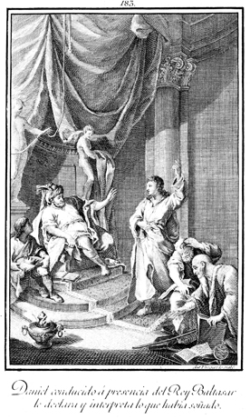 Description: Daniel describes and interprets Nebuchadnezzar's dream of a statue made of different materials. The engraver’s name is located at the lower right corner. As the numeral at the head of the page indicates, this is plate #183 in a series of illustrations.