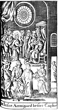 Description: Jesus is tried before the high priest Caiaphas, asPeter denies Jesus (bottom).