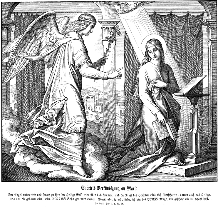 Description: Julius Schnorr von Carolsfeld's (1794-1872) depiction of the angel Gabriel visiting Mary and announcing that she will give birth to Jesus.