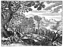 Description: In the background Cain and Able offer up their sacrifices to God. Abel offers a sheep and his sacrifice is accepted. Cain offers produce and is rejected. In the foreground, Cain clubs Abel to death in jealousy.