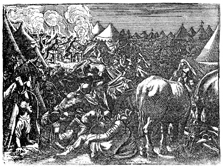 Description: Gideon and his men surprise the Midianites in the night, killing them in the confusion.