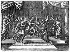 Description: King Saul has fits of madness, and so David plays his harp to soothe the king.