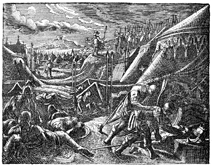 Description: David sneaks into Saul’s tent and steals his spear and pitcher to show that he easily could have killed the king, but chose not to, and then he shows his mercy by standing on a ridge nearby with what he had taken.