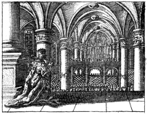 Description: Solomon kneels to dedicate the new temple with his prayer.