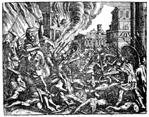 Description: Zimri sets his own palace on fire when he sees that Omri has succeeded in taking the city during the revolt.