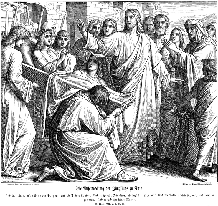 Description: Julius Schnorr von Carolsfeld's (1794-1872) depiction of Jesus raising a widow’s son from the dead at Nain .