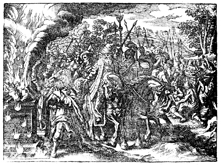 Description: God consumes Elijah's sacrifice with fire at Mt. Carmel as King Ahab and the prophets of Baal look on.