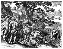 Description: Naaman is cured of leprosy by washing in the Jordan River seven times, as Elisha had commanded.