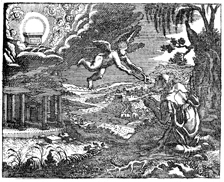 Description: Isaiah's vision of the heavenly throne room above the temple of Jerusalem. An angel touches a hot coal to Isaiah's lips with a pair of tongs.
