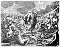 Description: Ezekiel's vision of the valley of dry bones. As God looks on from above, Ezekiel commands the dry bones to come to life.
