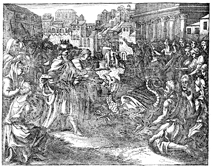 Description: Daniel feeds the dragon a cake made of pitch and hair and it dies in the presence of the King.