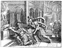 Description: Mattathias Maccabee kills a man worshiping pagan deities in the temple of God.