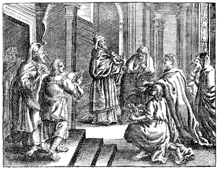 Description: When Mary and Joseph present the baby Jesus at the temple, Simeon and Anna bless him.
