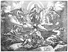 Description: Jesus is transfigured in the presence of Peter, James, and John. Moses and Elijah appear with Him.