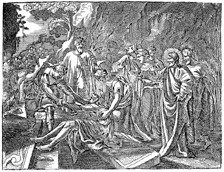 Description: As a crowd watches in amazement, Jesus raises Lazarus, now dead four days.