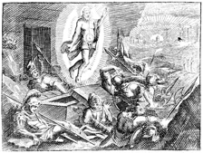 Description: Jesus rises from the dead at the amazement of the soldiers.