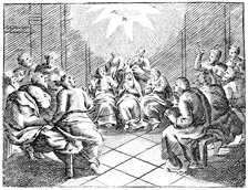 Description: The Holy Spirit descends on the disciples and Mary in the form of a dove on Pentecost.