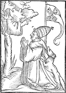 Description: The Pope is attacked by a fox as he prays to a tree with a hand coming out of it. Representation of the papal count.