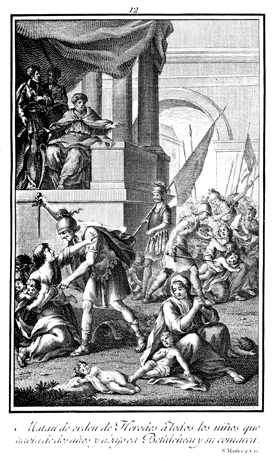 Description: Soldiers slaughter the male children two years of age and younger in Bethlehem and its region at Herod's order.