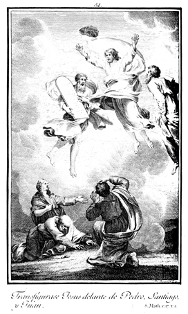 Description: Jesus is transfigured in the presence of Moses, Elijah, Peter, James, and John.