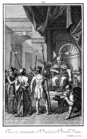 Description: Jesus is brought before Pilate, the Roman governor of Judea.