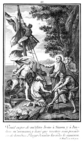 Description: Jesus calls Peter and Andrew to follow him, near the Sea of Galilee.