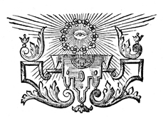 Description: This tailpiece features a wreath of flowers in front of an eye representing the sun.