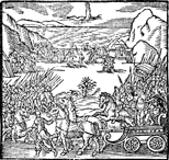 Description: Pharaoh's army in pursuit of the Israelites up against the Red (Reed) Sea.