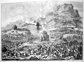 Description: Elijah defeats the false prophets of Baal at Mt. Carmel as the Lord consumes his altar with fire.