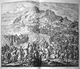 Description: Jesus stands in a boat and teaches a crowd of people gathered on the shore.