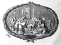 Description: A seven-headed dragon wearing seven crowns prepares to devour the child, who escapes to heaven, of a woman clothed in the sun with the moon at her feet.