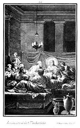 Description: Jesus celebrates Passover, or the Last Supper, with the Apostles and so institutes the Eucharist.