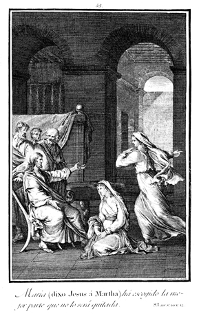 Description: Martha complains to Jesus about Mary listening to Jesus rather than helping with the work.