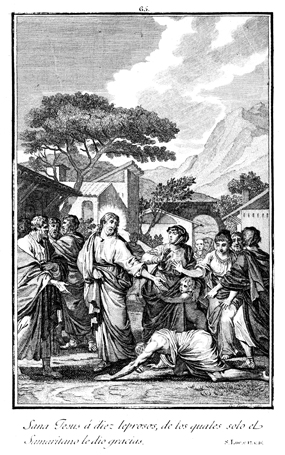 Description: Jesus heals ten lepers, but only one, a Samaritan, returns to give thanks.