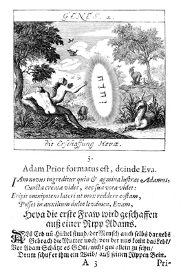 Description: God, represented by the Tetragrammaton, creates Eve from Adam’s.