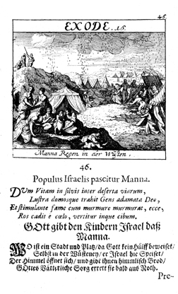 Description: The Israelites gather manna as it falls from heaven.