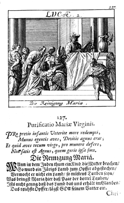 Description: Mary and Joseph bring the infant Jesus and present him at the temple.